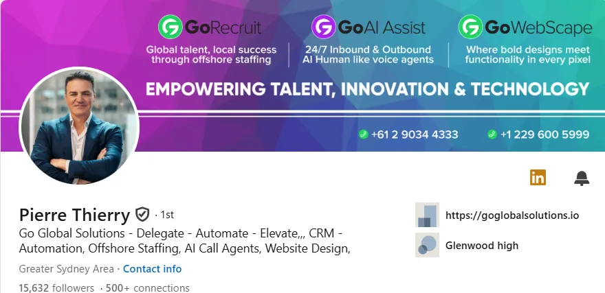 Go Recruit has provided excellent services. They have gone above and beyond to clearly communicate and deliver. Because of their help, my business has grown significantly, and has been an invaluable network and partnership. I highly recommend Pierre and Go Recruit.